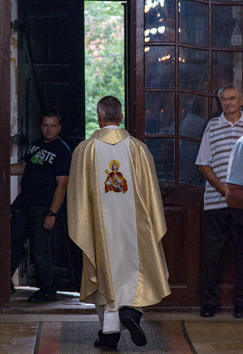 Bližijo se kraj svečane mîse i župnik je "poŽurijo" ka izlaznim, crkvenim "dverima"...