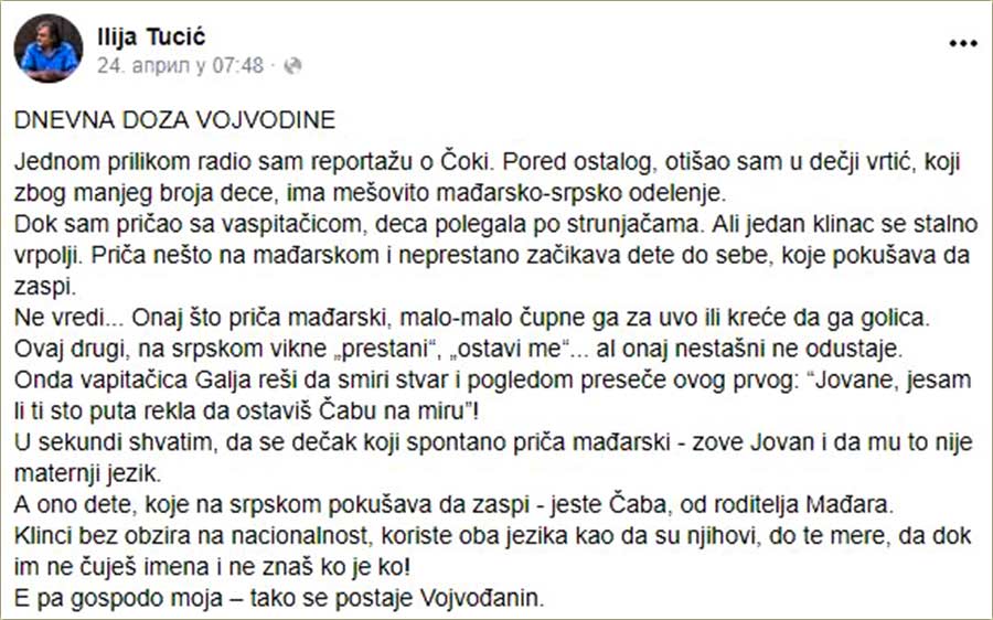 Pročit'o sam tu priču... i "mâlko" kasnije sam 'teo da je "naNovo" pročitam..., jer..., to je to..., to je Vojvodina...
