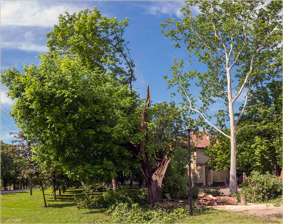"Posla" ponoći, "situvacija" se smirila i čim je "svanilo, vidilo", se da su delovi Beodre i Karlova bili "podVodu", a i da je nastala šteta u vidu podignuti' "crepova, skrjani" grâna, pa čak i stabala !!!