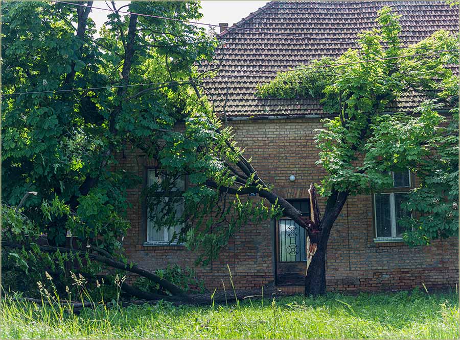 U jedan krâtak "perijod", možda od tri do pet minuta, "veter" je baš "zdavo, jâko" dûv'o i baš "ondak" je i "naPravijo" najviše štete po selu !!!