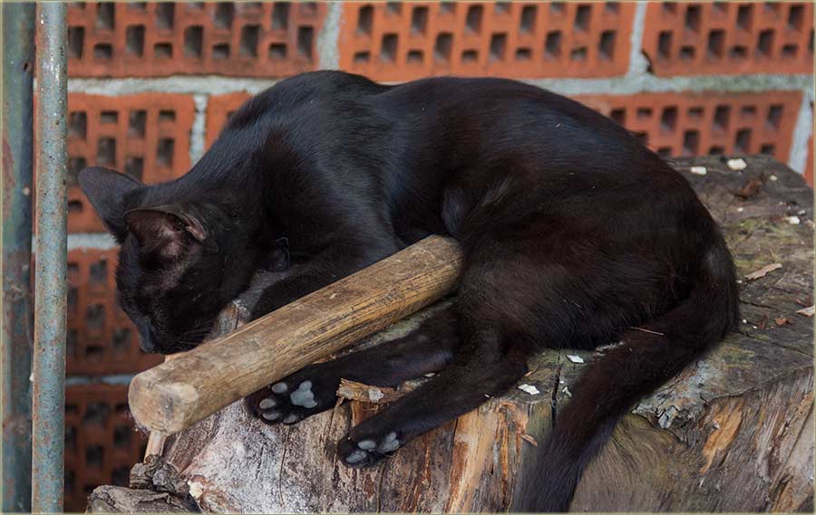 Opis: E što sam "naKâljo"..., pre "neki dân"..., ja bi da cepam drva za rakiju od kajsija..., a mačka spava "naPanj" i "sikiru" !!!