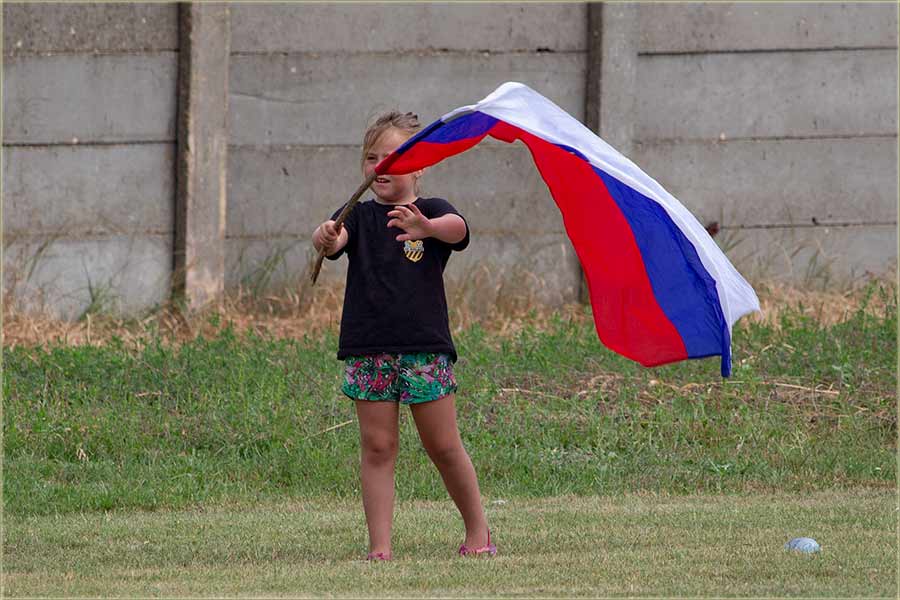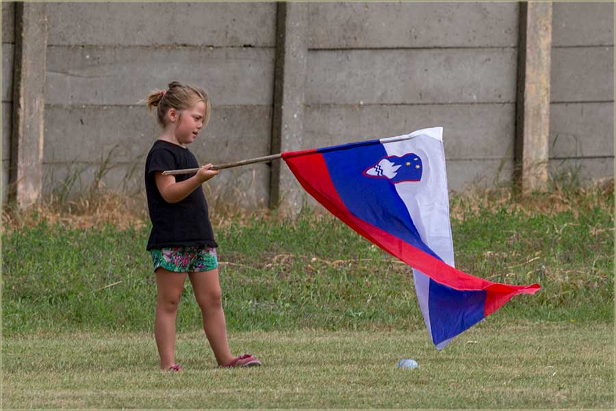 Mala navijačica iz Miklavža, iz Slovenije, se dugo trudila, da 'opravi zastavu njene "dežele"...