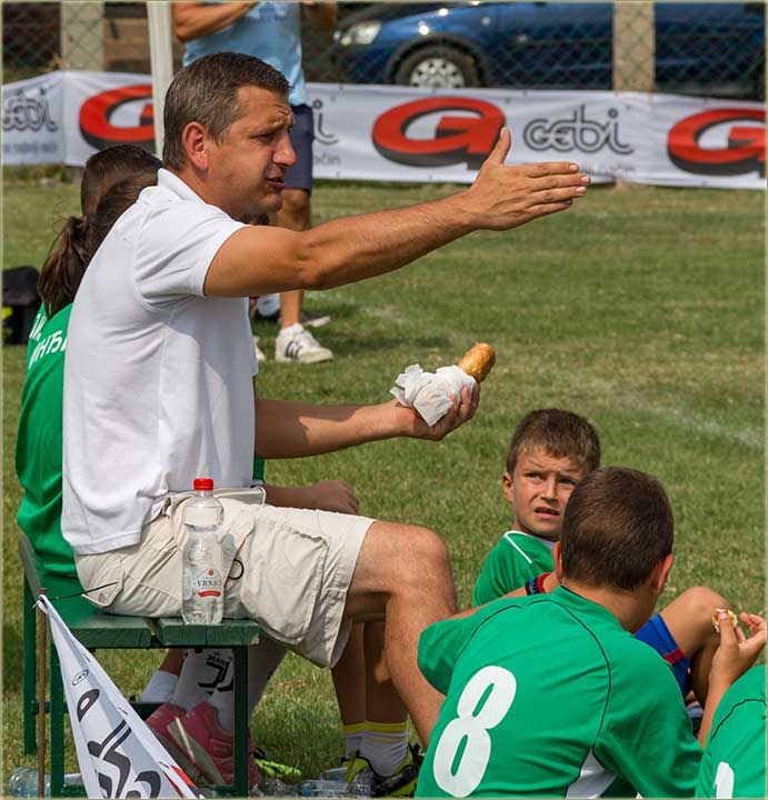 Ipak, u ovu, "kav" kategoriju, sam "zapazijo" jednog', koji je "oGladnijo", pa je jeo sendvič, "priPravijo" je i vodu, jer je "cigurno" i "zaSûšijo"..., al' ga to ništa nije sprečilo, da viče na "dečurliju" iz njegovog tima, puni' "ûstiju" !!!
