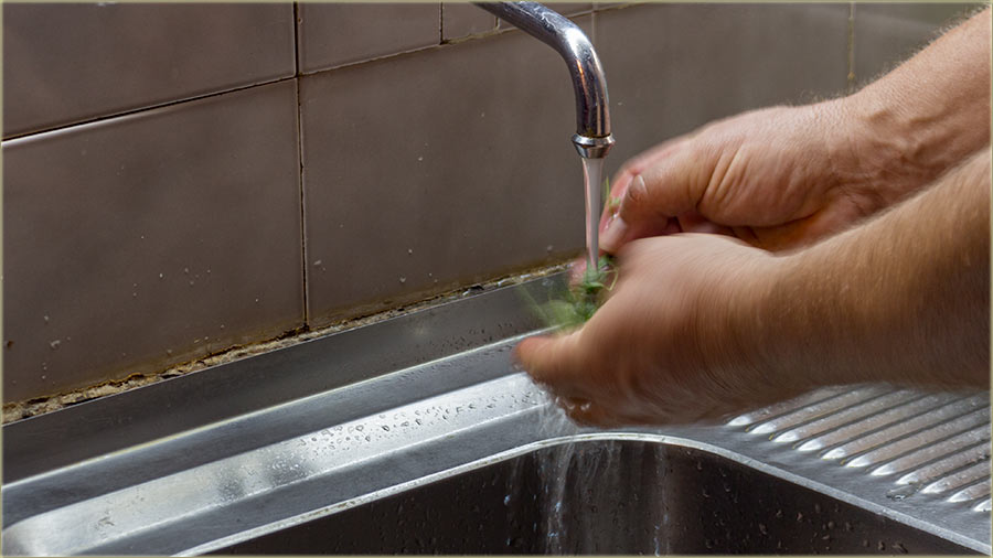 Za čaj, naberem tri grančice mente i dva lista žalfije, operem i'...