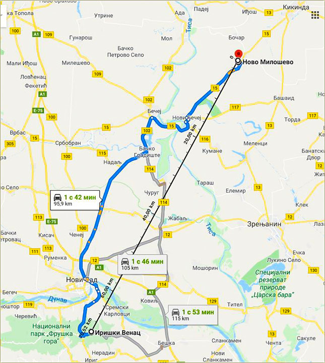 "Hiruški" venac, je "po luftu", kako kâže Google maps, a "zaNaš" kraj, od "Miloševa" "doleko", 70-tak "kiloMeteri"...