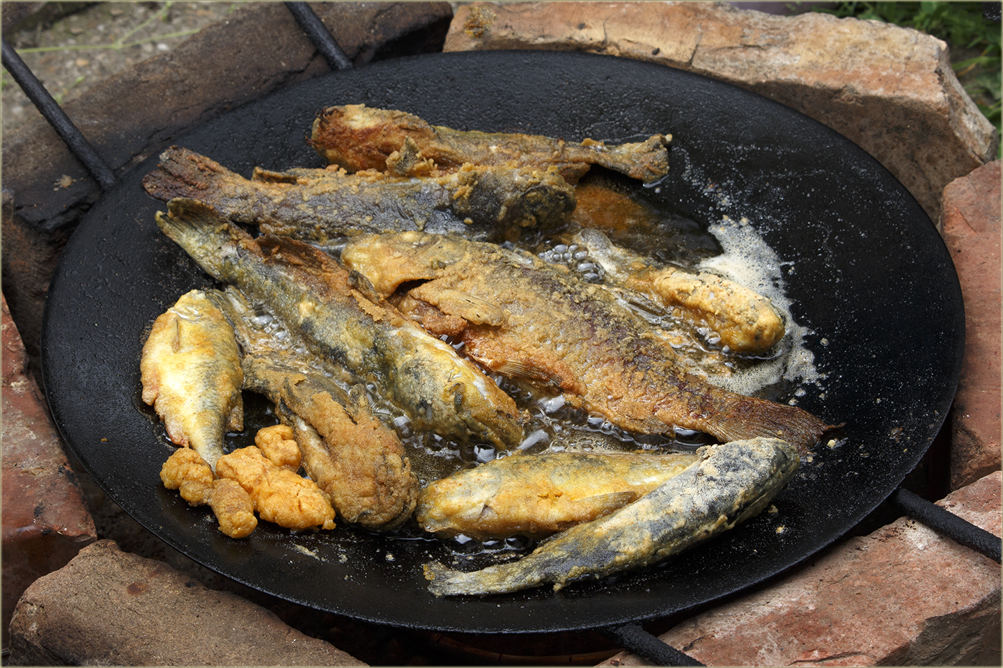 Opis: Nêma "boljog provijanta", od tek "uPecâte", očišćene ribe..., a pečene na "mâšću" i talandaru !!!