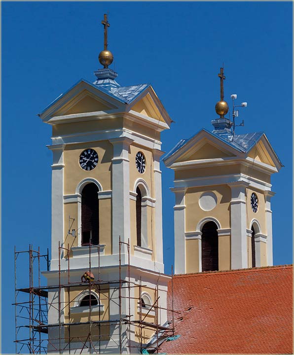 Opis: Iz priloženi' fotografija, je sve jasno - râdovi "na obnovu tornjova" rimokatličke crkve, su "gotavi"..., ostalo je još samo da se skele "razMontiradu", što se ono "kodNas" u "Miloševo" kaže: