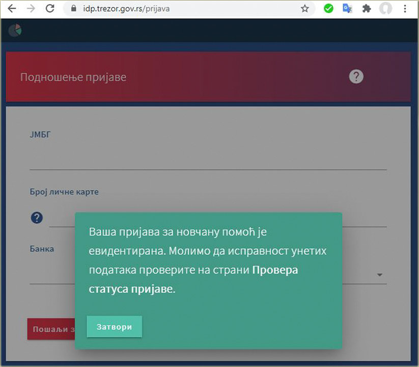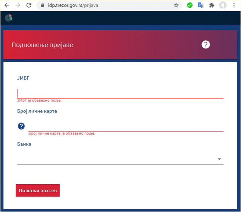 Prijava se vrši, na portal' Uprave za trezor, a na "atresu" - idp.trezor.gov.rs !!!