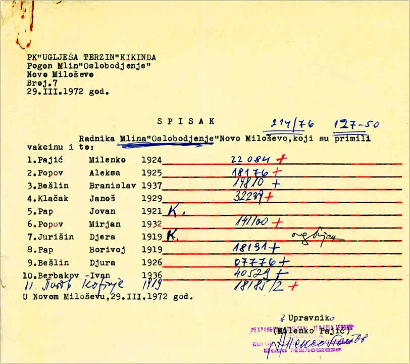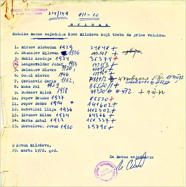 "ZaFaljujući" spiskovima, koje mi je "dostavijo" saradnik na ovaj "sajit" - Stojan Stôja Mesaroš, "ôdena" imamo "ekskluzivu", da vidimo, kô se sve, "ondak" vakcinos'o, te 1972-ge godine !!!