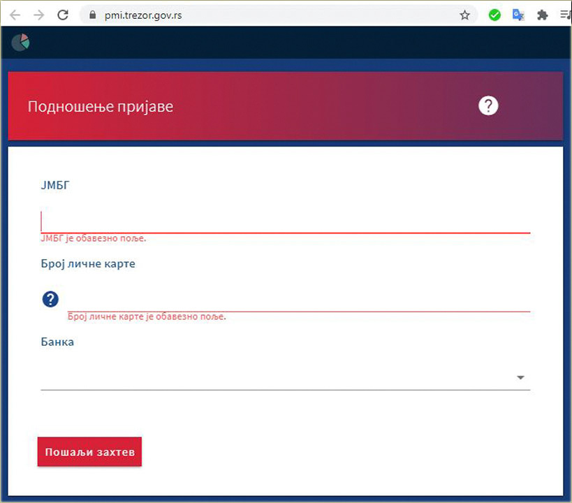 Prijava se vrši, na portal' Uprave za trezor, a na "atresu" - pmi.trezor.gov.rs !!!