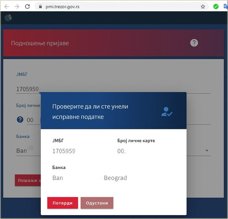 3. "IzKočiće" Vam mâli ekran, za proveru unetog'...Kad' tu kliknete na - Potrdi...