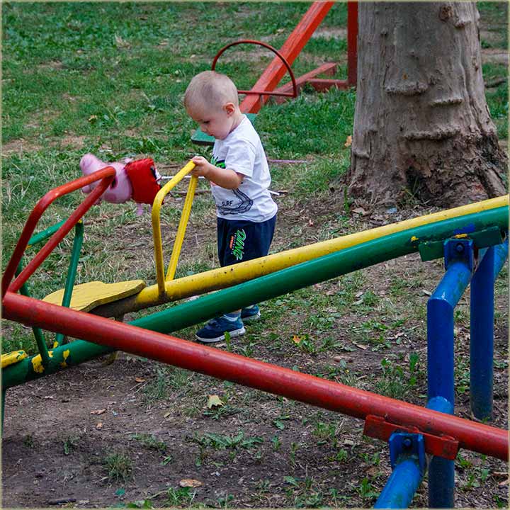..., da "uzjaši" klackalicu, koja je "očito", još uvek velika za njega. Njegova mati i ja, smo konstatovali, da ga "naNovo slikamo", za jedno deset godina, a na "isto mesto" !!!
