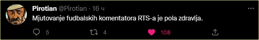 - "Daklem", ovo je stvarno strašno..., em za vreme "utaknica" moramo da slušamo, dosadne, zastarele, "kav sportcke, kav" spikere RTS-a, koje svi "brez" ikak'e nužde plaćamo...
