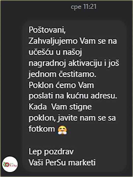 Opis: Počelo je ovako..., na fejsbuk "stranicu" PerSu Marketi, je "izišlo sledećo"...