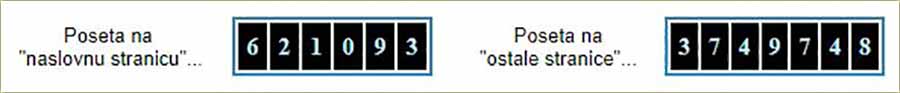 Od "ondak" je ovaj "sajit", im'o "priko" šesta" dvades't 'iljada poseta, što se tiče naslovne stranice..., "okolo" Tri "milijona, sedamsta" pedes't 'iljada poseta, ostalim stranicama...