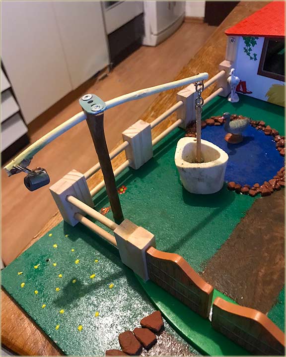 Delovi bunara su: soja - drveni, rašljasti stub. Kroz rašlje je provučena osovina. Đeram je krivo kao lûk, bagremovo drvo, probušeno poprečno kroz sredinu i kroz tu rupu je osovinom spojen sa sojom, pa se đeram ravnomerno klati oko osovine. Može se na sredinu đerma nadograditi iskovan gvozdeni ležaj, pa se kroz njega provuče osovina. O vrh tanjeg dela đerma je okačeno parče lanca, a za njega šiba. To je tanka motka, dugačka oko jedan do dva ili koliko je bunar dubok. Na kraju šibe je zaponak, za koji se kači kabo, gvozdena kopča i grivna, kojom se zaključa ručica od šavolja ili vidrice, vedra ili kabla...