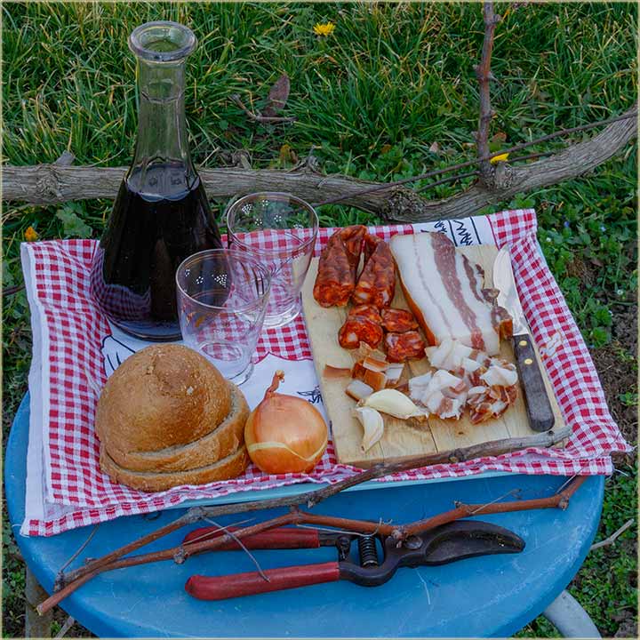 Prvo smo "mâlko naPakovali" 'râne i "ondak" smo "očili uBašću, di" imamo dva "špalîra vinogrâda"...