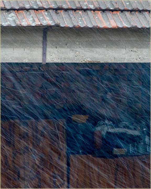 "Jučeraske" je skoro "cêli" dân padala kiša i to uz "jâki veter", da bi "priRâsla" u susnežicu i sneg, "okolo" tri sata "poslaPodna" !!!