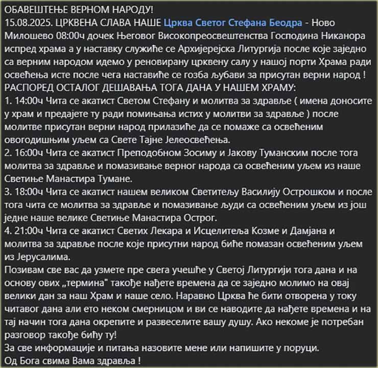 Opis: Crkva Sv. Stefana "uBeodru", nam "danaske" slavi slavu, što je ujedno i poslednja od tri ovogodišnje, tak'og tîpa, a "kodNas" u "Miloševo" !!!