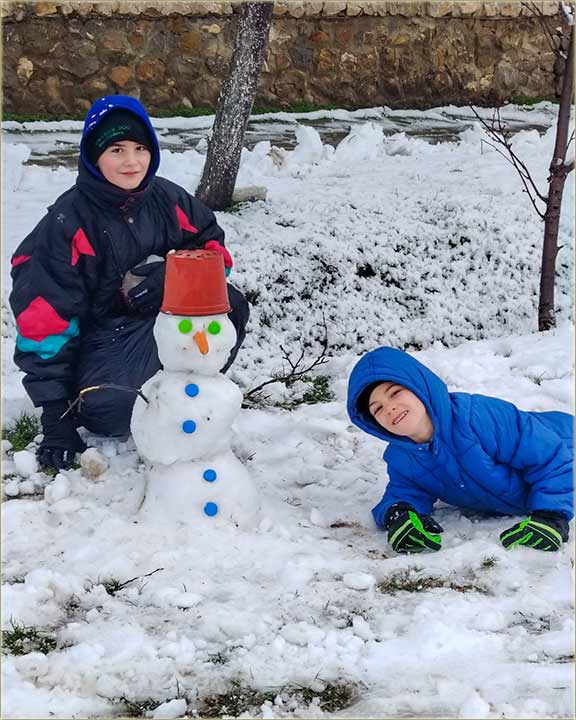 Dakle u mom mikrosvetu su se našli sneg i ovde više puta pominjane malodobne komšije s roglja. Što je rezultiralo pravljenjem Sneška.