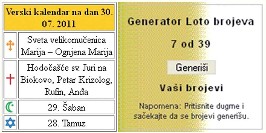 No ipak, za jedan deo predloga je potrebno samo "malko" više "slobadnog" vremena, pa su tako dva "rejalizovata" i posta'ljena na "naslovnu stranicu": verski kalendar i generator loto "brojova"...